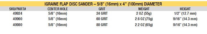 Igraine 5/8" (16mm) Flap Disc Sander - in your choice of one grit - 24g, 60g or 80g